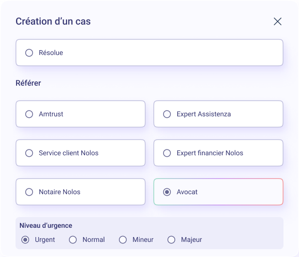 Modale simplifiée pour la création de cas