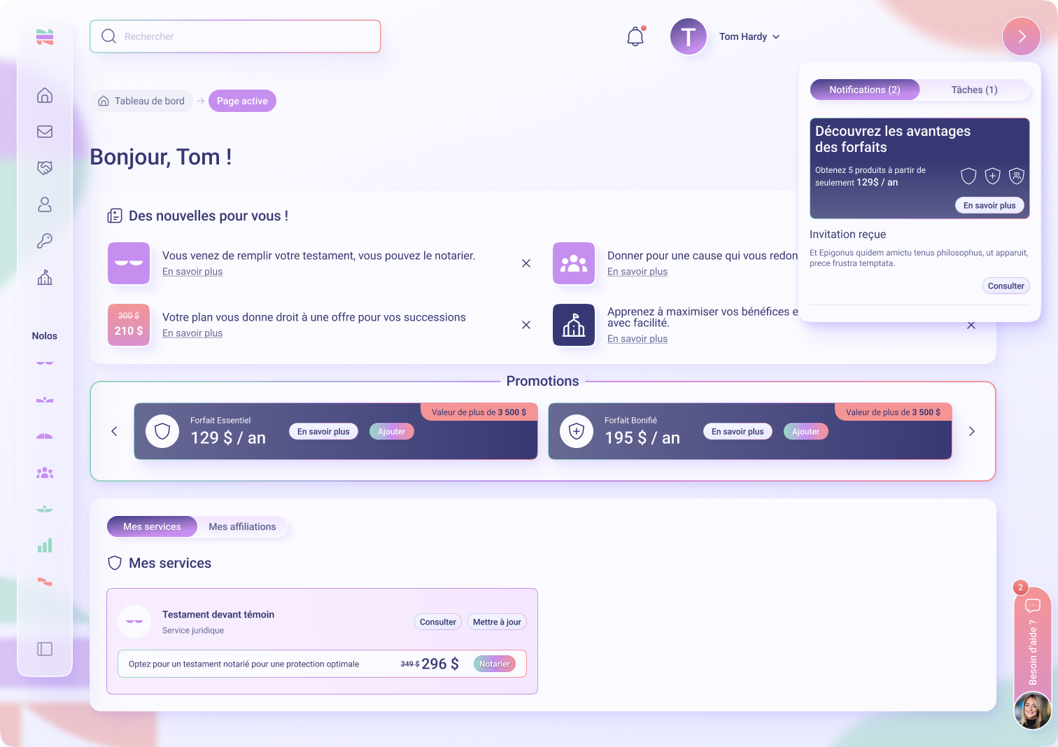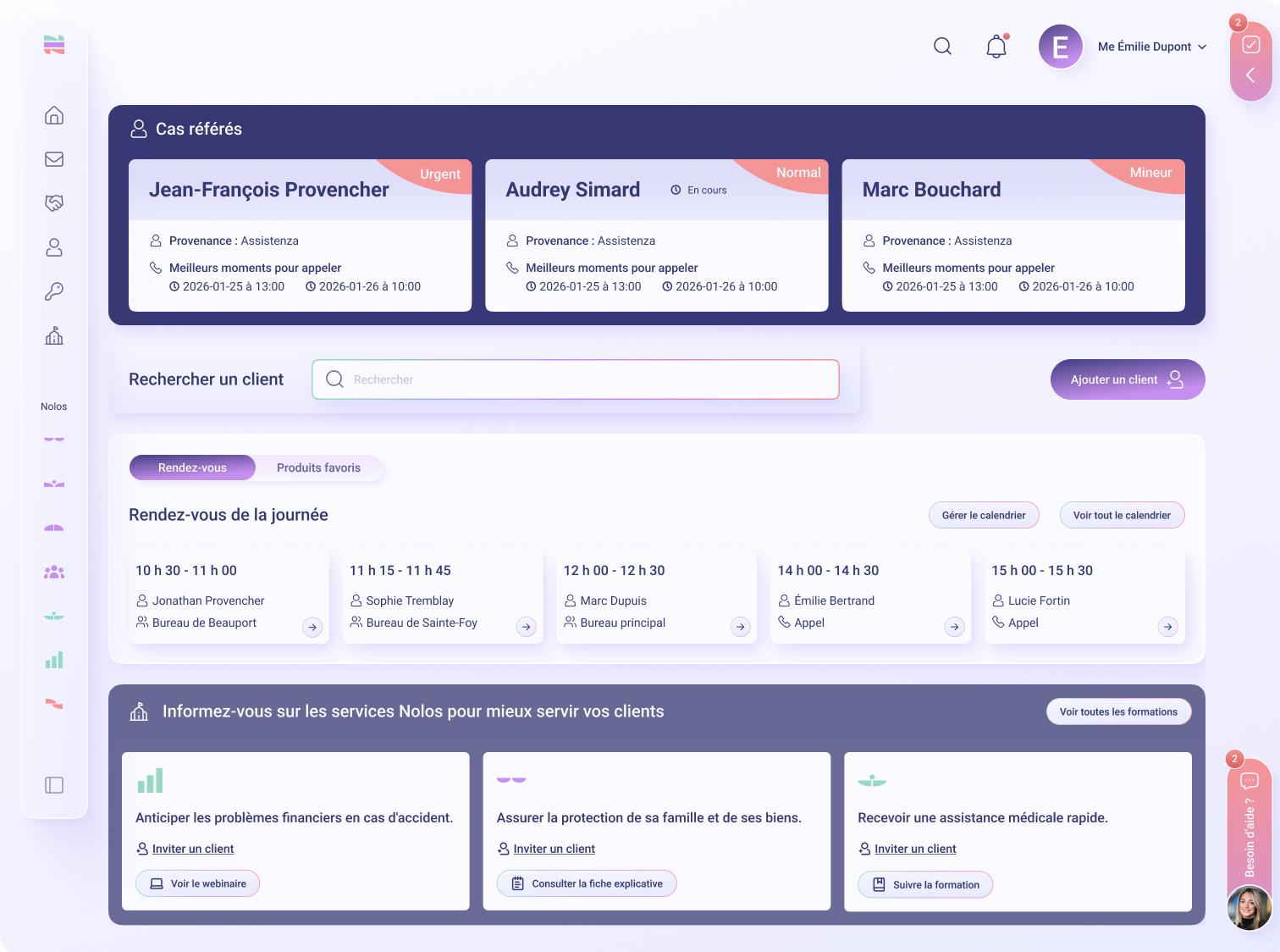 Nolos est une plateforme qui centralise des services habituellement fragmentés : juridiques, d’assurances, de finances, d’assistance et médicaux.